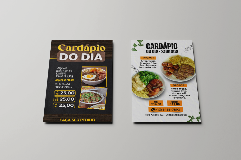 Disponível em formato padrão A4 (210 x 297 mm) e outras opções sob medida, o cardápio impresso em papel de alta qualidade proporciona uma apresentação profissional e impactante, permitindo incluir imagens atrativas dos pratos, QR codes interativos e informações essenciais.