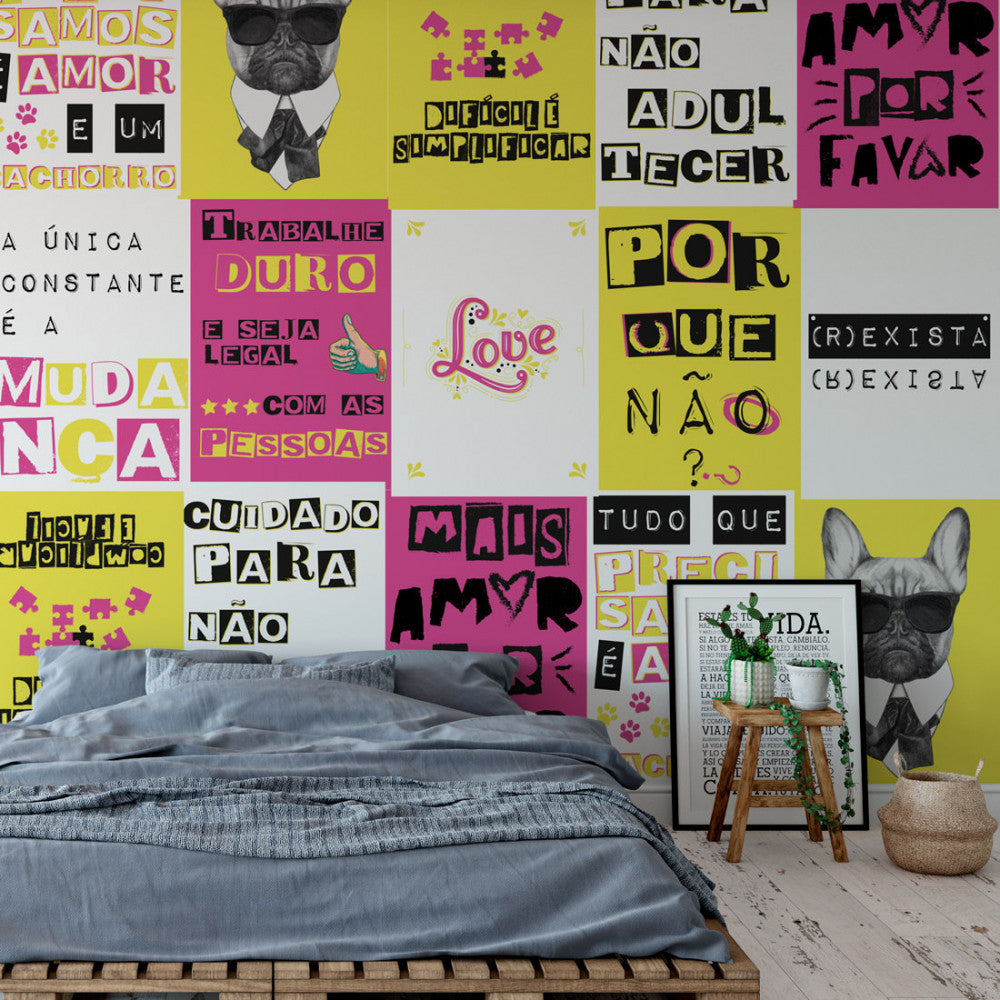 Como Aplicar o Lambe Lambe: Misture água e cola branca em partes iguais e aplique com um rolo na parede. Em seguida, cole os lambe-lambes, sem se preocupar com amassados ou bolhas, que fazem parte do estilo. Se preferir, aplique mais uma camada da mistura sobre o papel colado para maior durabilidade.