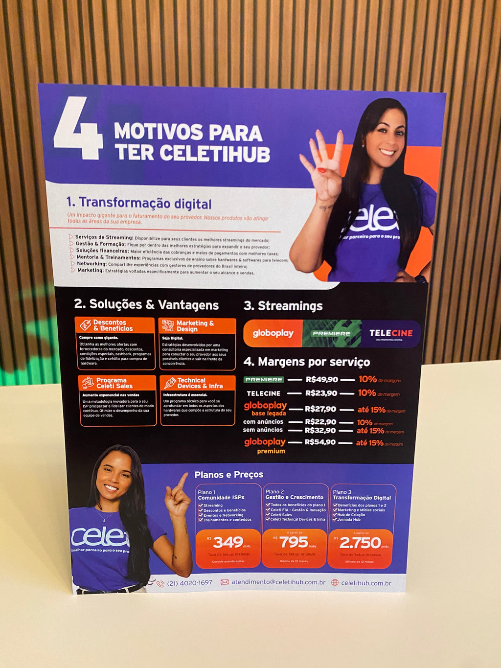 O valor informado é para impressão 4x0 cores em couché 115g/m², com acabamento brilho ou fosco.