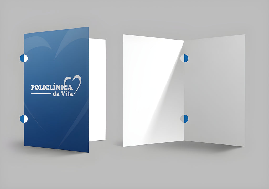Essa pasta conta com dois furos redondos na dobra central, facilitando a fixação dos papéis. Ideal para empresas, escritórios, treinamentos, propostas e muito mais.